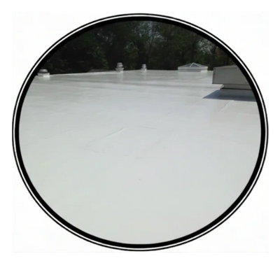 We began by cleaning the entire roof system, we then removed and replaced the wet insulation and made initial roof repairs. Then we installed the polyurethane base coat to the entire roof system and with added reinforcing mesh around drains and problematic seams. We allowed it to cure, and lastly installed the highly reflective Energy Star rated white finish coat. All for a cost of under $4 a foot with a 12 year roof restoration warranty!